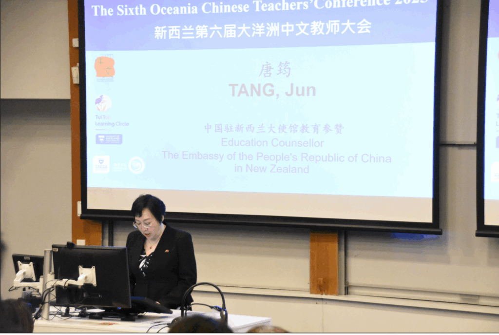 中国驻新西兰大使馆教育参赞唐筠在开幕式致辞中表示,在中新两国关系持续深化的背景下,中文教育对促进两国文化交流具有重要意义。奥克兰大学Tui Tuia Learning Circle主任张艳芳和孔子学院院长周学麟博士对一线中文教师的辛勤工作表示肯定,并承诺将继续支持新西兰中文教学及教师培训工作。新西兰中文周项目负责人丽贝卡·尼达姆呼吁教师们积极参与即将于下月底举办的中文周活动。